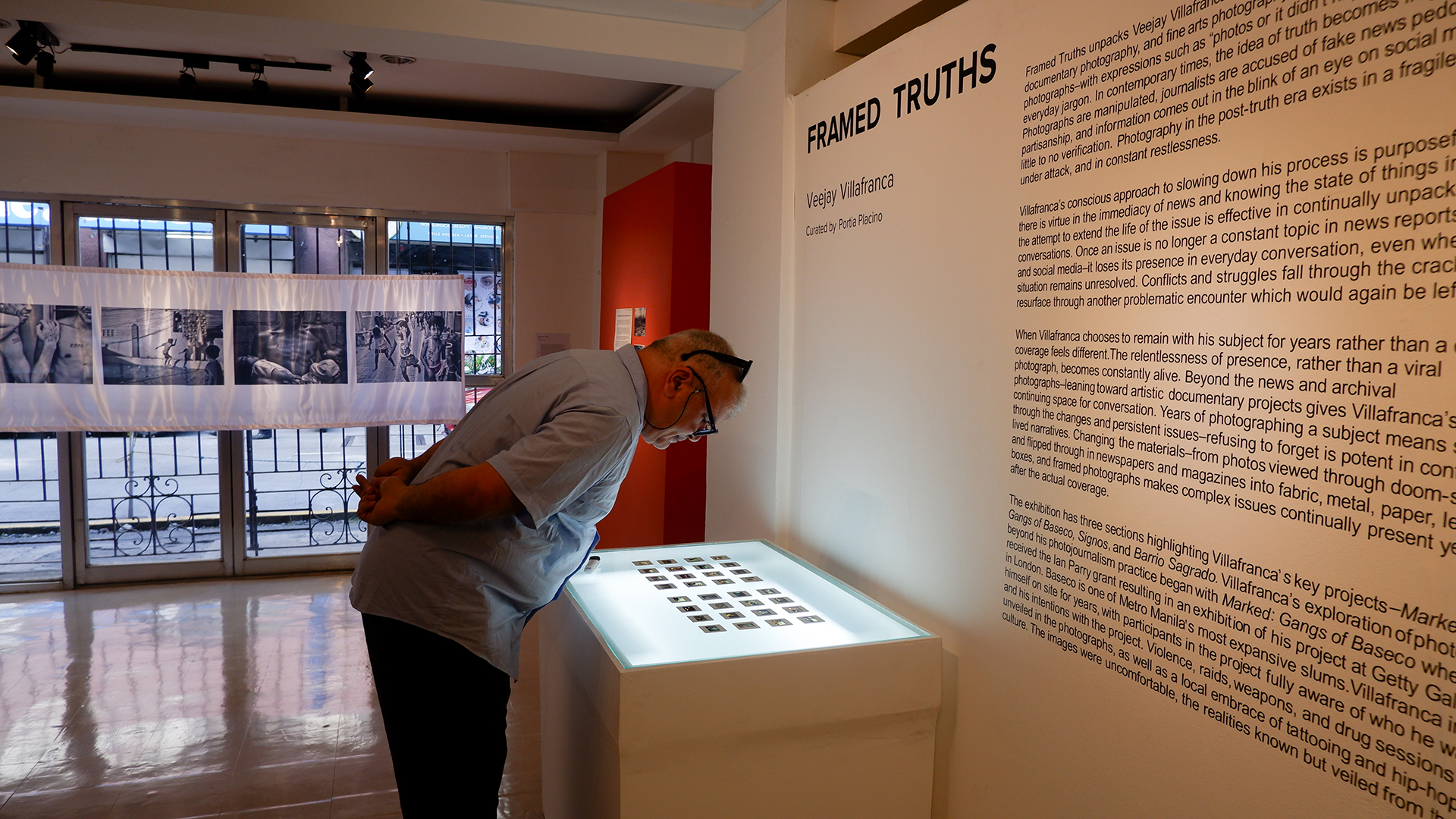 Framed Truths unpacks Veejay Villafranca's process as he traverses photojournalism, documentary photography, and fine arts photography. Truth is implied in photographs–with expressions such as “photos or it didn't happen” becoming part of everyday jargon. In contemporary times, the idea of truth becomes fragile. Photographs are manipulated, journalists are accused of fake news peddling and partisanship, and information comes out in the blink of an eye on social media with little to no verification. Photography in the post-truth era exists in a fragile state, often under attack, and in constant restlessness.