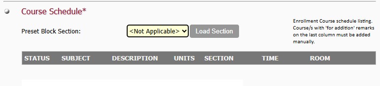 3. To enlist a block section, select from the Preset Block Section, then click the Load Section button (image 2).