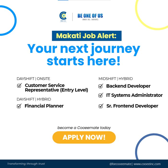 We’re looking for the following roles that will be part of our Makati and Iloilo team.